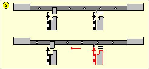 Once a good lugging is found, we can start placing the lugs on the slide-bars. Start with the first of the 6 selected numbers. In our example from above this is 13. Place a lug on the first position of the first bar (disregard the movement bars!) and continue until you have placed 13 lugs in the first position of the first 13 slide-bars. Proceed with placing 7 lugs in the second position of the next 7 slide-bars and so on. The Advance Bar Lugs on the