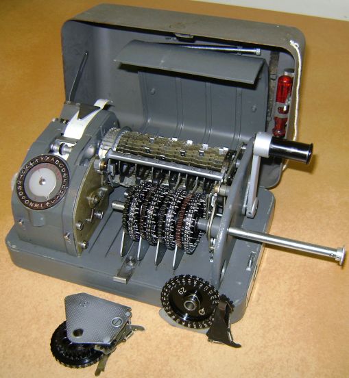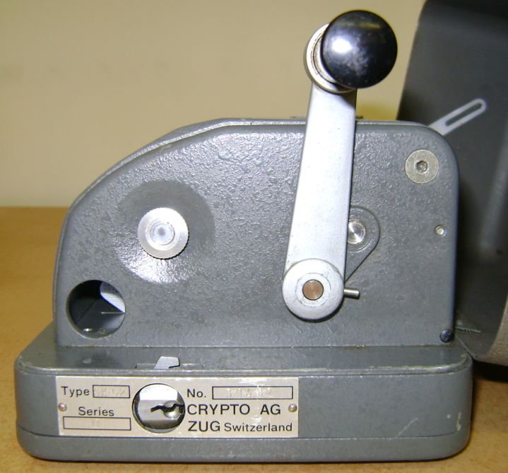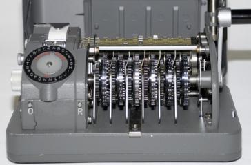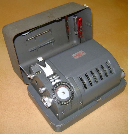 The special wheel movement bars in the early CX-52 setup are also used for enciphering. When using the movement bars also for enciphering the lugs, one must follow the rules as explained above, but also be sure to create a good stepping cycle for the wheels. Therefore, due to complications in preparation of acceptable lug patterns, later CX-52 models use the special movement bars exclusively for the stepping of the pin wheels and no longer had a tooth at their left side to advance the print wheel. There are different versions of the C-52 and CX-52. Some have fixed advance bars spread all over the drum instead of the normal first 5 bars. On some machine versions the advance bars are detachable and their order can be changed. To add a complication to the encryption it is possible to use an offset on the print wheel. This is done by pulling the dial knob on the left away from the machine, thus disconnecting plain and cipher print wheels from each other, and then turning the dial a given number of steps. For example, when enciphering the letter H with an offset of 2 letters the machine will actually encipher the letter F. Some machines are equipped with a Variable mode F-V switch, locate at the left side of the machine. In the Fixed mode, the two print wheels remain connected with each-other during the ciphering process. In the Variable mode, the position between left and right print wheel changes constantly. During a Variable mode enciphering cycle, the letter of the left wheel is printed first. Next, the two print wheels are disconnected and only the right wheel turns to its new position and prints. Finally, the two print wheels are reconnected again in the new position. In Cipher mode, the left print wheel prints the selected plain letters, and the right print wheel prints the encrypted ciphertext letters. In Decipher mode, the left wheel prints the entered ciphertext letter and the right wheel prints the decrypted plaintext letter. The start position of the six wheels at the beginning of the message is called the message key. This message key is a crucial part of the cryptographic settings of the machine and must be unique for each encrypted message, in order to make optimal use of the key variations. If the same message key is used for many different messages this increases the amount of statistical information for a cryptanalytic attack on the message. There was no standard procedure to encipher messages. Each customer could create his own message procedure, of course assisted by the advice of the manufacturer. One part of the procedure is telling the receiver which message key was used for the transmitted message. One way to relay the message key is to include it into the message. However, the operator must encipher the message key before transmission in order to relay it in a secure way. This can be done by selecting a random message key (which is used to encipher the message), set a random start position for the six wheels and then encipher the selected random message key. Next, the random start positions and the enciphered version of the message key are sent together with the message. The receiver sets his wheels in the received random start positions, deciphers the encrypted message key, sets the retrieved message key as start position and deciphers the rest of the message. The procedure with the enciphered message key, as described above depends entirely on the secrecy of the machine settings. If these settings are compromised, then unauthorized persons can decipher the message. Some procedures use a second secret table with message keys in addition to the key settings sheet. Both sender and receiver use a system to agree on one of the message keys from the table. This can be done by transmitting a random selected number that corresponds with a message key, or in a small message center by using the message keys one by one. If the machine settings are compromised and the message key table is kept secret, there are still 10,779,215,329 possible start positions (on the CX model) unknown to the attacker, which was still a tremendous number in the pre-computer era. To find the number of possible keys with which to set a machine we have to calculate each of the variable elements. These are the 6 pin wheels, the lugs, the print wheel offset and the initial start positions or message key. Theoretically there are 247 possible ways to set the pins on one wheel with 47 pins. For the CX model this gives 7.7 x 1084 possible pin patterns for all six wheels. The limitations from the pin setting rules will reduce this number to 4.2 x 1083, which is still an astronomical number. This is comparable with a 278 bit key for the wheels only. The theoretical total of possible lug combinations with 27 lug is 4.5 x 1059 (we exclude the 5 bars that are used for movement!). However, if we follow all the rules for