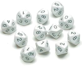 Gebruik nooit gewone dobbelstenen door twee stenen samen te tellen en twee waarden te negeren. Deze methode is statistisch ongeschikt om de waarden 0 tot 9 te produceren en dus absoluut onveilig (het totaal 7 zal zo'n 6 keer meer voorkomen dan 2 of 12). Gebruik daarom één zwarte en één witte dobbelsteen en ken een waarde toe aan elk van de 36 combinaties, rekening houdende met de volgorde en kleur van de steen (zie tabel hieronder). Deze methode geeft een 0.277 waarschijnlijkheid (1 op 36) voor elke combinatie. Hiermee kunnen we drie reeksen met de waarden 0 tot 9 produceren. De overige 6 combinaties (met zwarte 6) kunnen eenvoudigweg genegeerd worden, wat statistisch geen effect heeft op de andere combinaties.